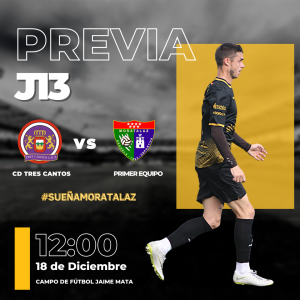 El Primer Equipo se enfrenta al CDF Tres Cantos en el partido correspondiente a la Jornada 13 del Grupo 1 de Preferente. El partido se disputará en el Jaime Mata.