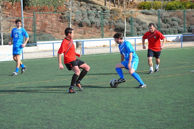 El choque comenzó con un intento de los de rojo (los amigos de Jorge), de amilanar a los azules (amigos de Guti), al quedar el responsable deportivo de la Escuela encerrado en el vestuario por no se sabe muy bien que error técnico (la imagen del momento así lo atestigua). Pero una rápida y anticipada acción de Papá Noel permitió al capitán de los azules abandonar la clausura y dirigir a los suyos sobre el césped artificial de La Dehesa de Moratalaz.